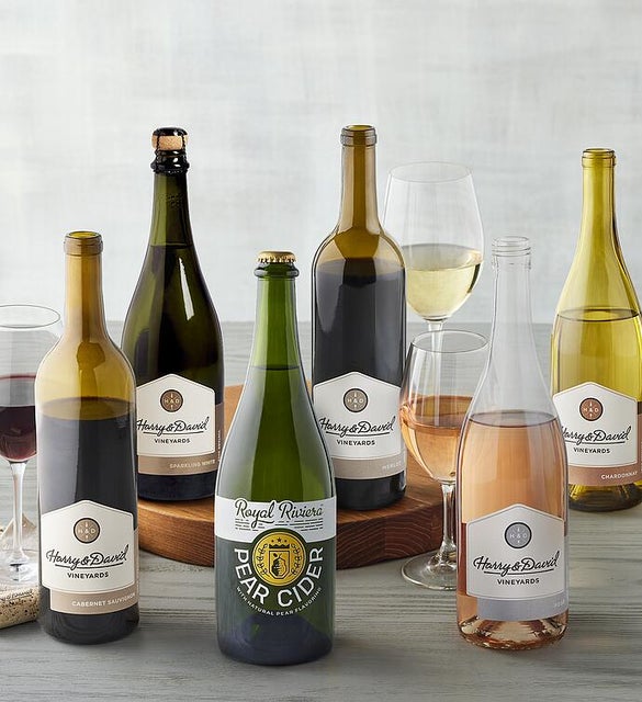 Choosing which wine to gift or serve can be difficult. This collection of six Harry & David favorites from our Oregon vineyards makes it easy. Featuring a sparkling white; an award-winning rosé; full-bodied Cabernet Sauvignon, Merlot, and Chardonnay; and a small-batch hard cider crafted with our famed Royal Riviera® Pears, the assortment offers something for everyone.